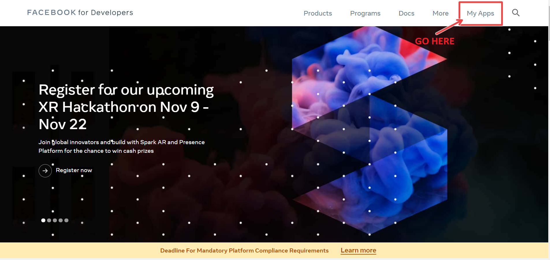- Go to the Facebook Developers site: https://developers.facebook.com/