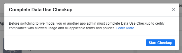 Note: Before you can switch to live mode, you must complete Data Use Checkup.